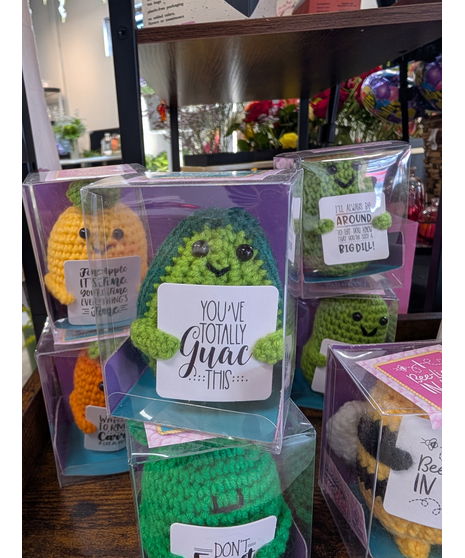 These cute and funny little emotional support pal stuffies are a great add on to your order.
