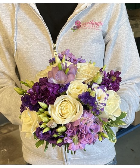 Make a statement on prom night with this full-sized, hand-tied bouquet. Lush blooms, fun colors, and layered texture create a bold, unforgettable look that’s meant to be seen.