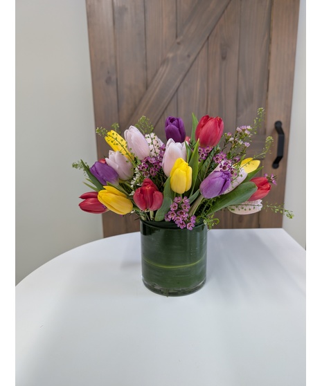 Nothing says Spring is coming like tulips! Featuring an array of colorful tulips with complementary flowers in a vase. Think spring!